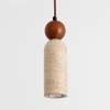 Iluminação Decorativa Pendente para Ambientes em Travertino e Madeira
