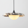 Luz decorativa difusa para compor ambientes internos com presença visual sofisticada e materiais contrastantes.